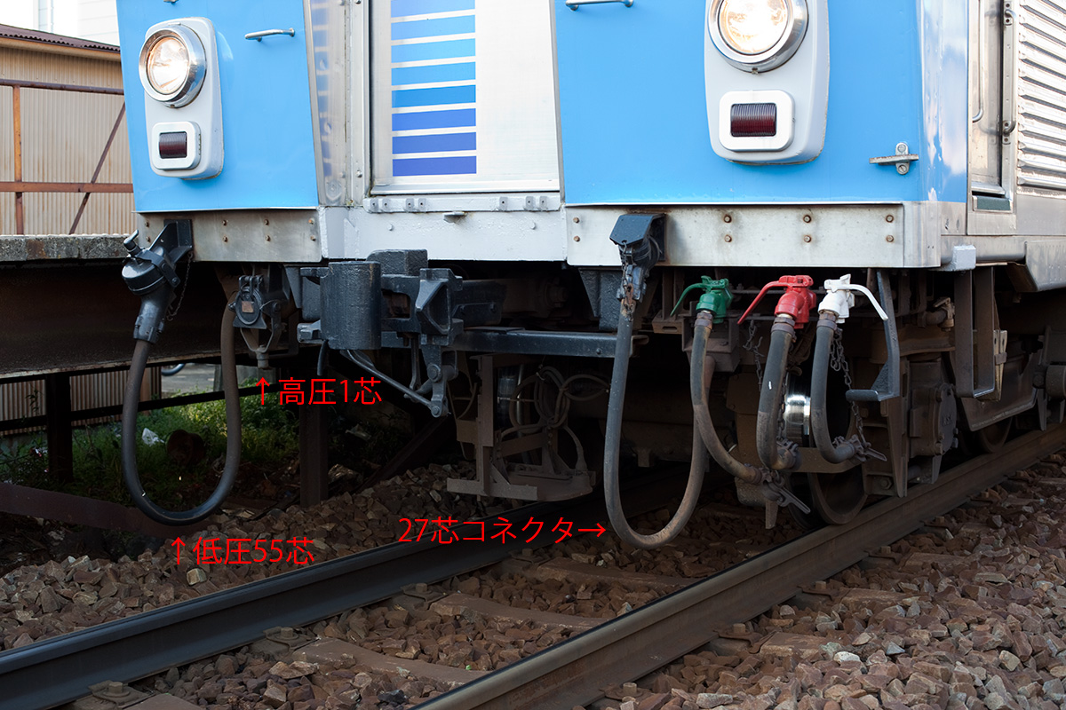 とくに十和田観光電鉄の7200系は従来の電気連結器をすべて撤去し、新たに低圧114芯(IC-014型)の栓受けを搭載しています。 ↩ 戻る
