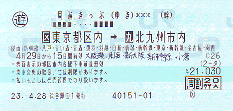 ゴールデンウィーク中に北東北と九州に行かねばならず、東京・青森と東京・博多の往復割引乗車券をそれぞれ購入すると41,940円かかるのですが、長距離の片道乗車券を周遊きっぷと組み合わせることで、6,000円以上も安くすることができました。