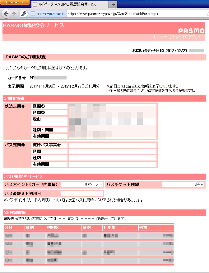 2012年3月1日追記NHKニュースによると、問題検証のためPASMO履歴照会サービスを停止したとのことです。