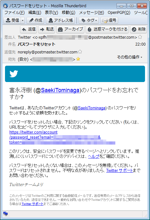 Twitterから「パスワードをリセット」というメールが来た方へ