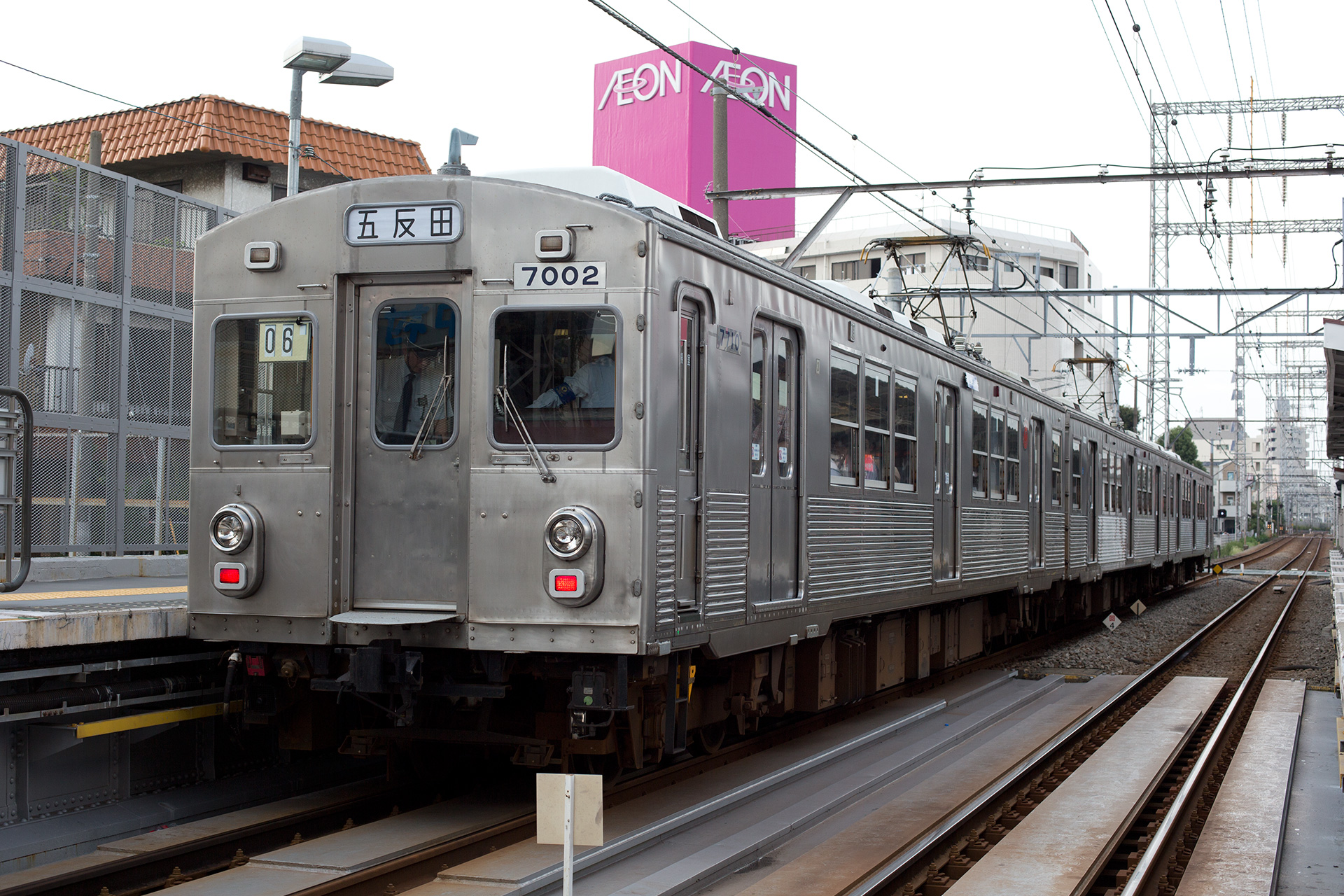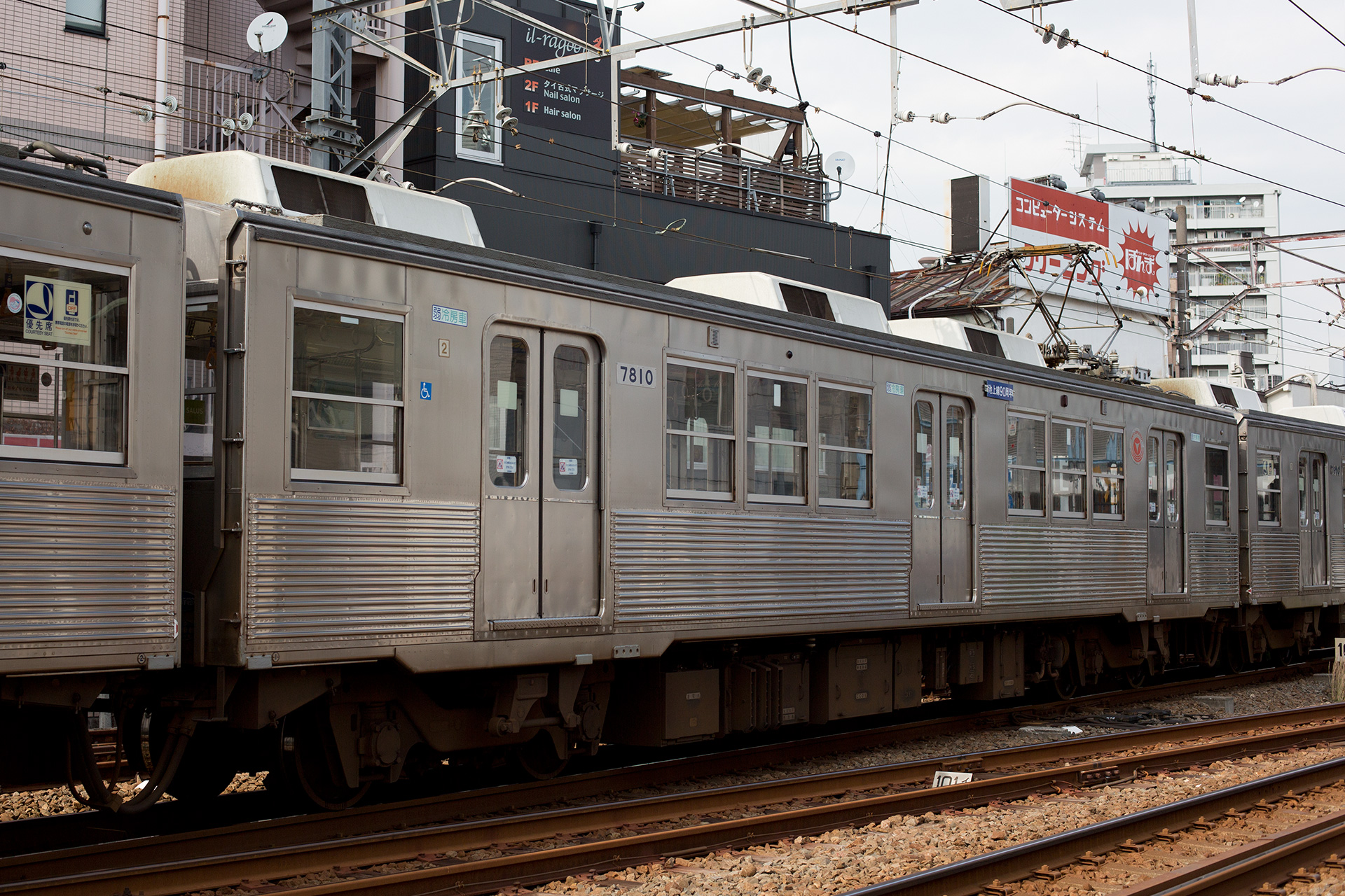 今日の運転では4月から行われている赤帯撤去に加えて、正面窓のゴムを灰色に見えるようにしたり、行先表示を"方向幕"にするなどのほか、驚いたことに先頭車正面の車番が7000系時代の番号に変えられました(側面は変更なし)。一応ツッコんでおくと、当該車は7000系時代、旧6000系などと同じく正面の番号が小さいタイプだったので、正しい再現とはなっていませんが、現行車番プレートとの関係で難しかったのかもしれませんね。