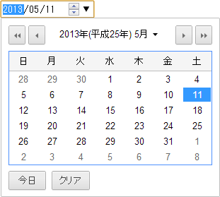 - カレンダー下部にあった"クリア"ボタンは廃止され、代わりに入力欄の右側に×ボタンが表示されるようになった。日付を入力していない時や