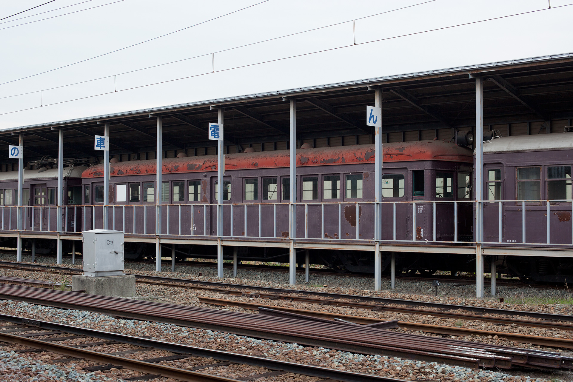 旧型車両群は運び込まれてまもなくブルーシートが掛けられたようですが、劣化が激しく剥がれ落ちてしまっています。2000系の方はきちんと管理されているのか今もブルーシートがきれいに掛かっていますが、車体を完全に覆うものではなく、塗装が剥げている箇所も見られました。