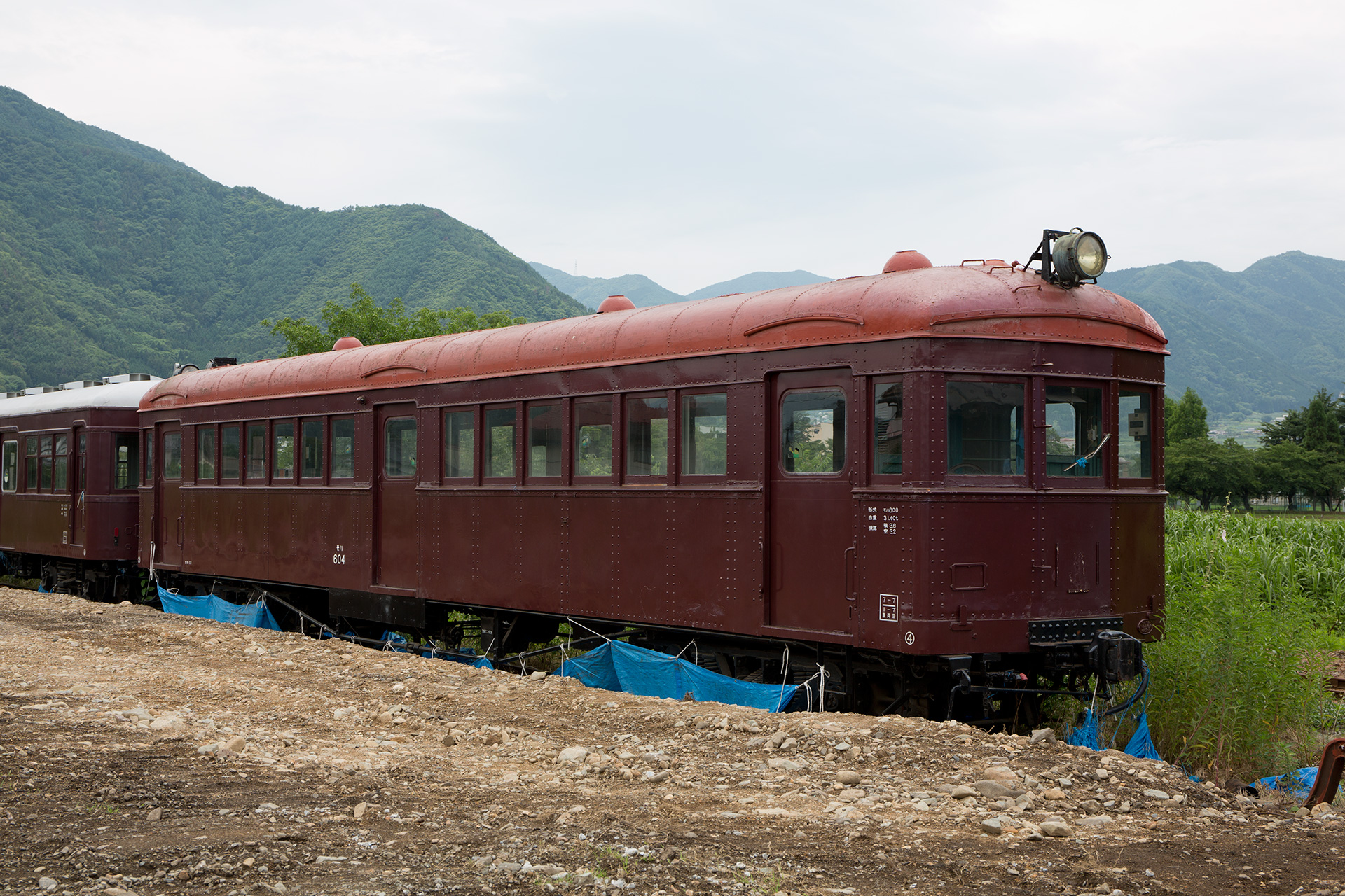 長野電鉄信濃川田駅跡に保管されているモハ604とその台車について