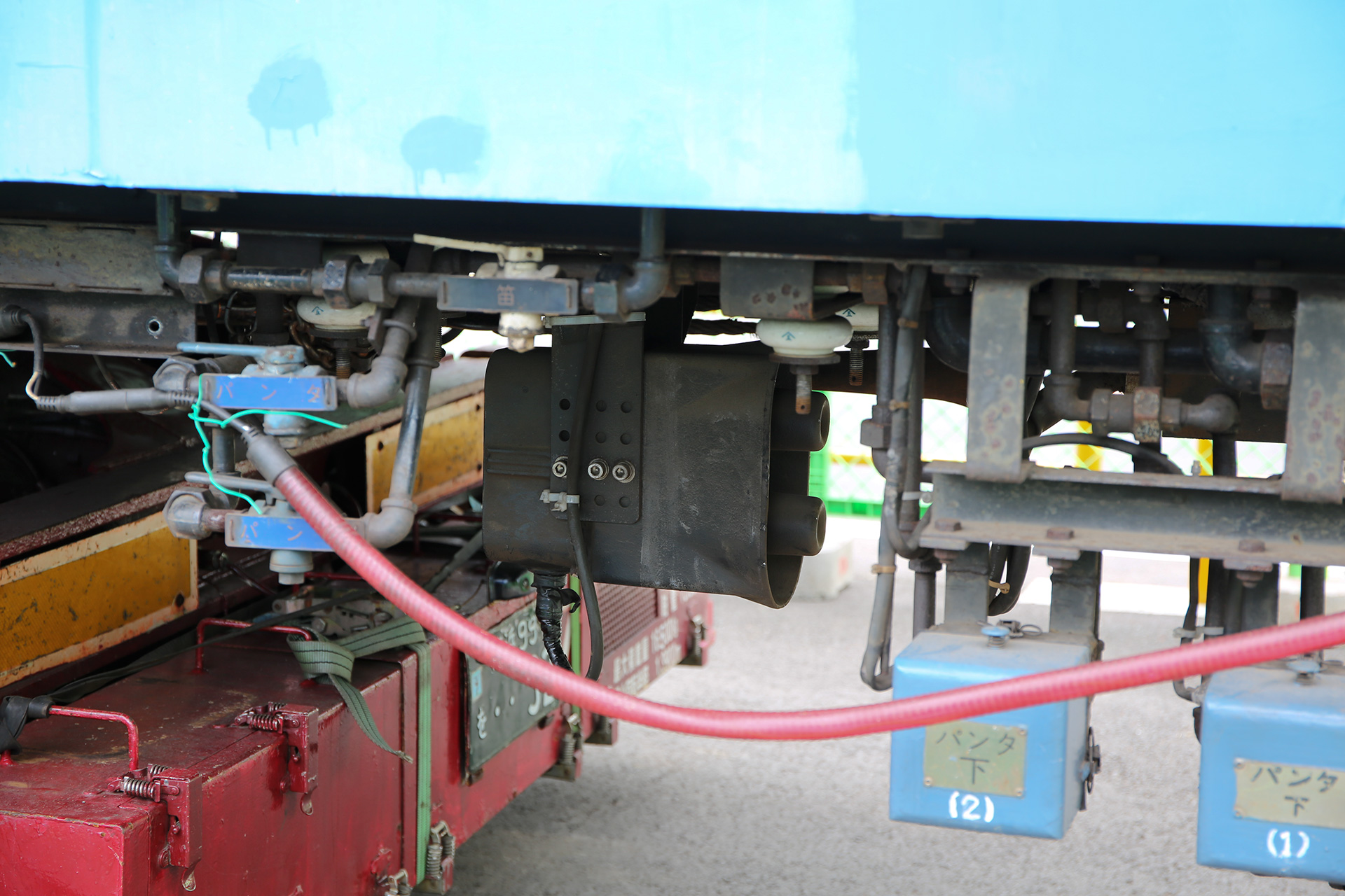 台車以外だと保安装置関連が取り外されていたくらいで、オリジナル運転台側の新型警笛(RUK-959型)もそのままでした。これは2010年に交換されたもので[1]、実質2年くらいしか使われていない部品なのですが、他車に流用はせずこのまま破棄してしまうのでしょうかね。