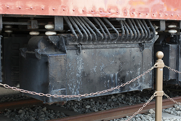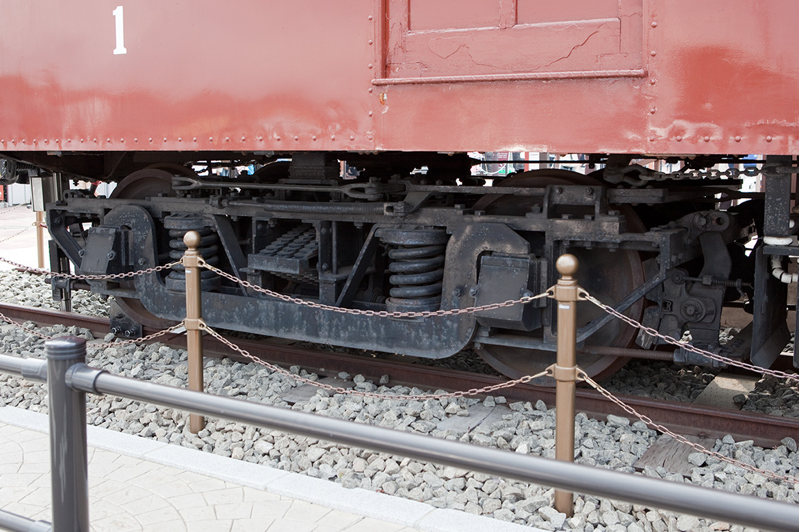 車両を取り囲むように柵が建てられているため、台車全景を撮るのは不向きですが、逆に各パーツを心ゆくまで観察することができます。