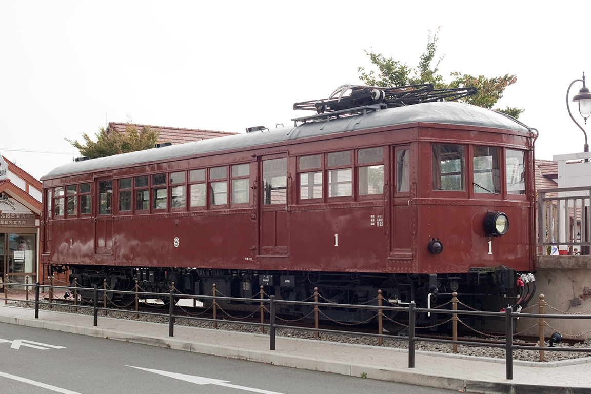 富士急行の河口湖へ行ってきました。目当ては駅前に保存されているモ1です。