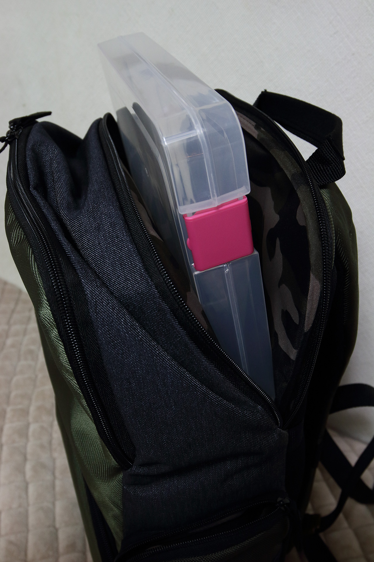 - フルサイズ一眼レフと交換レンズ(F4ズーム2本、単焦点1本)を収納可能