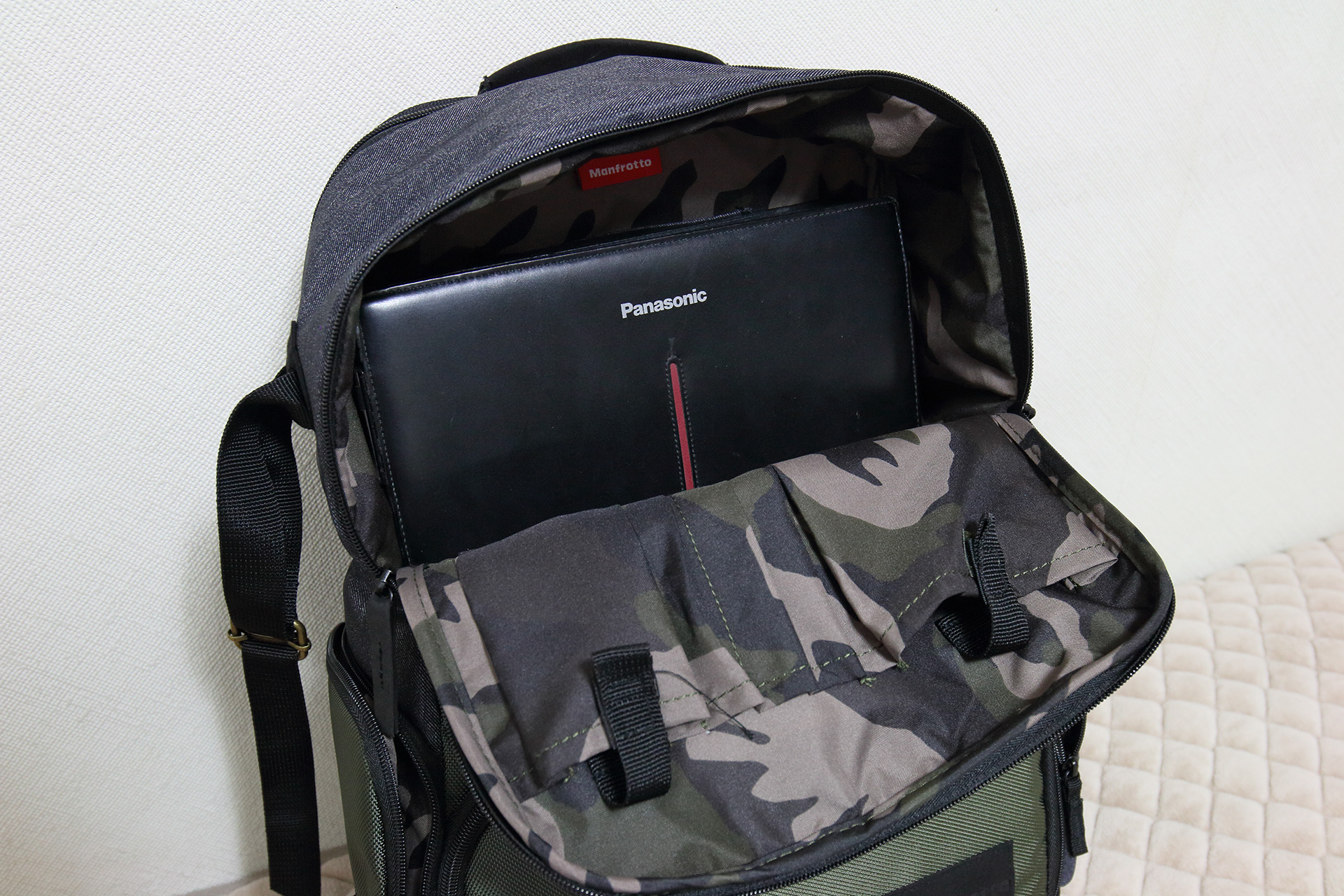 Let's note の J10 (10.1型)が入りました。本来のノートPC収納部は別のところ(後述)なのですが、小型のモバイルノートであればここにも収納可能ということで。
