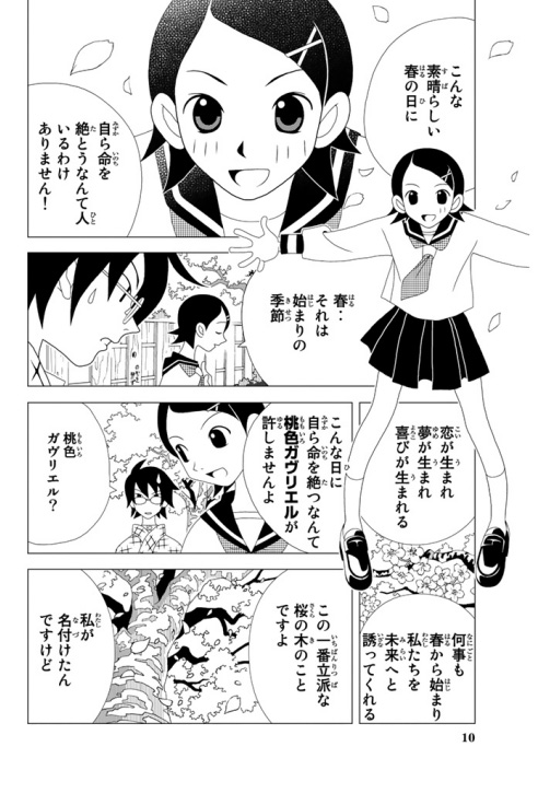 単行本での p.10 の可符香は、下書きではキャラクターの枠の空間が空けられており、可符香は別の紙に独立して描かれていた一方、 p.16 の望は普通にコマ割りの中に描かれているのです。