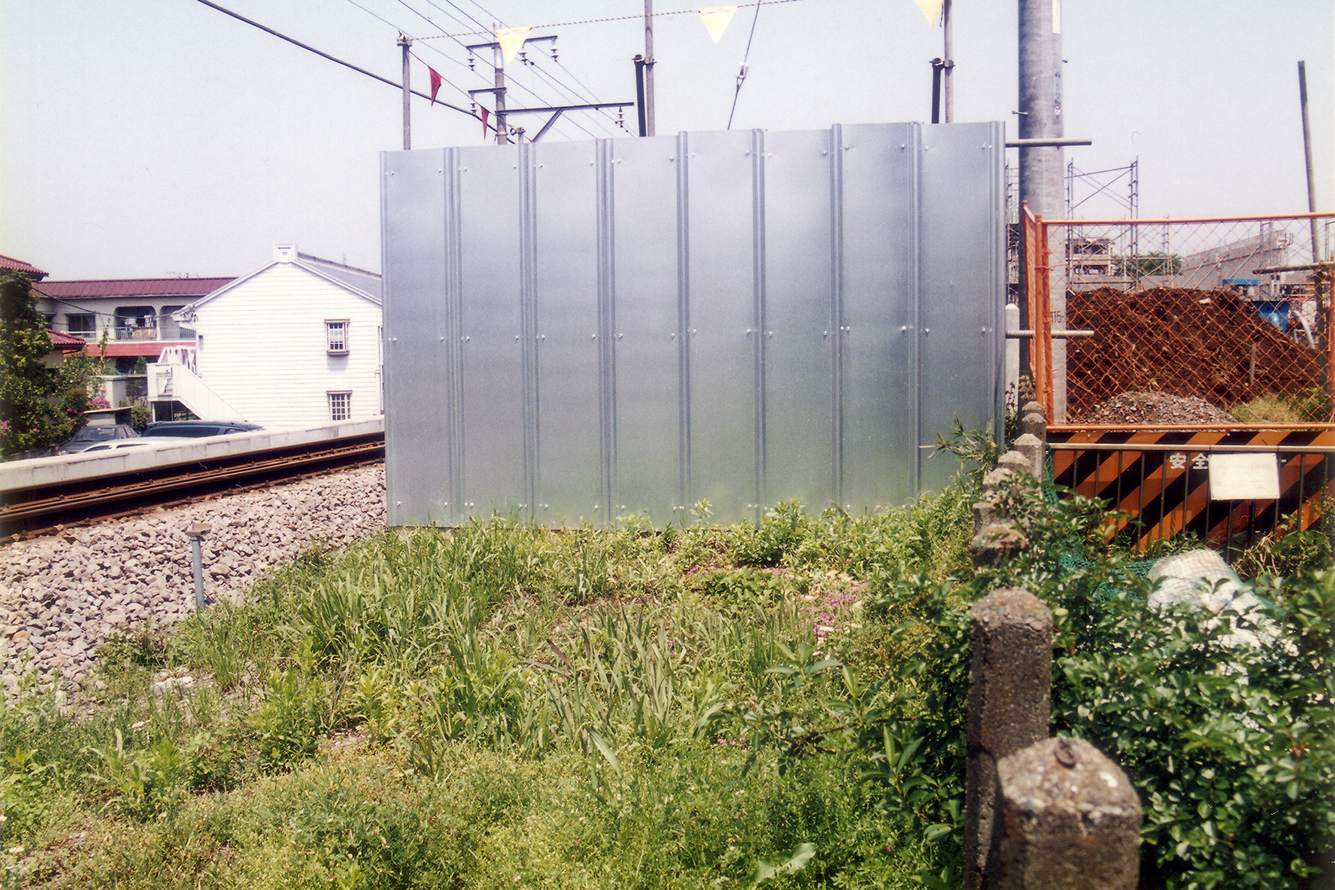 このマンション建設前まで、線路沿いの敷地南端は、いかにも線路が分岐していたかのように鉄道柵が広がっていました。後世になって鉄道用地との境界に沿って設けられた柵だとは思いますが、これも今は線路と平行になってしまいました。