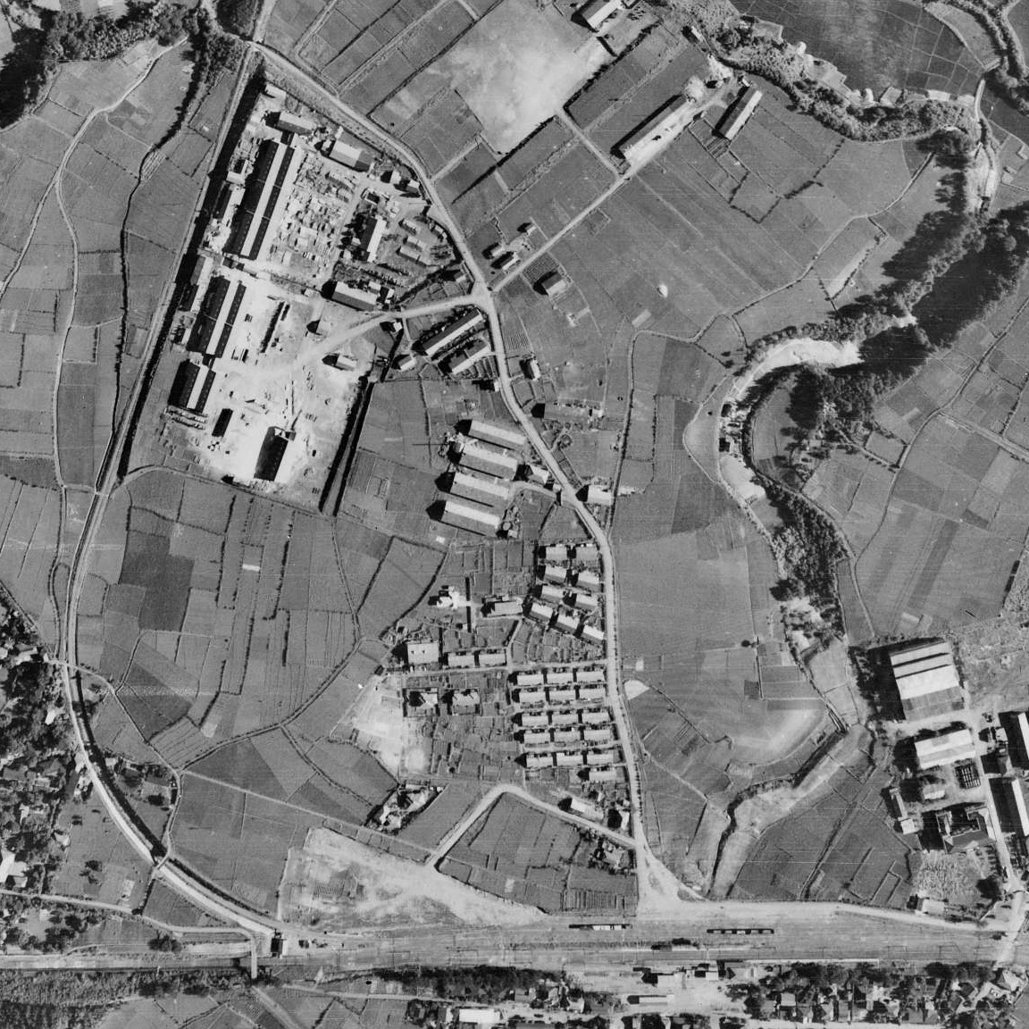 朝鮮戦争休戦の後、工場は閉鎖されたようですが、北側の敷地には病院が建設される一方、南西の建物のうち、南北方向に長い工場棟(?)は残されました。