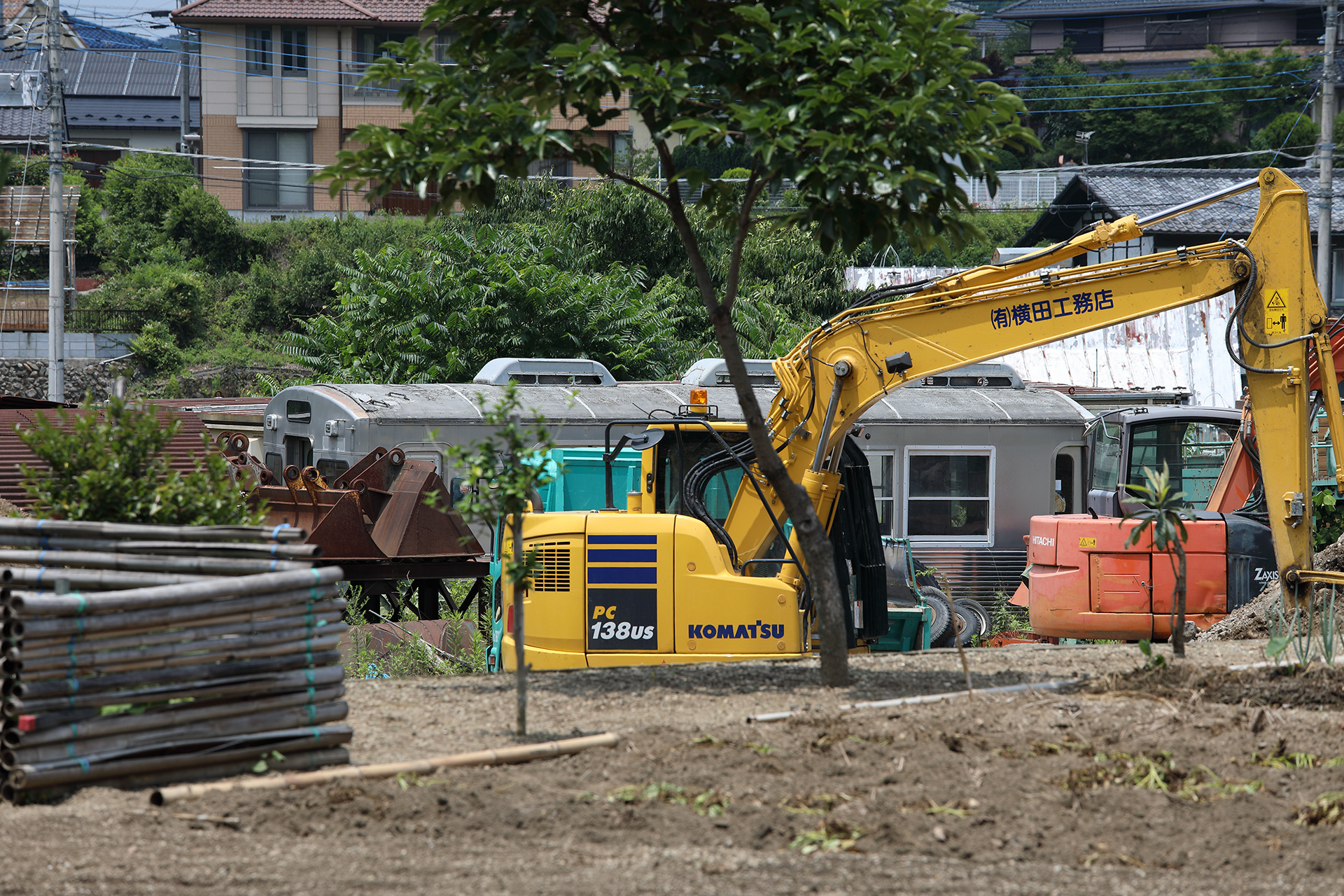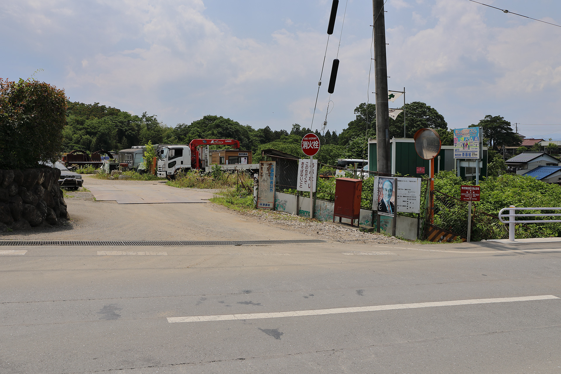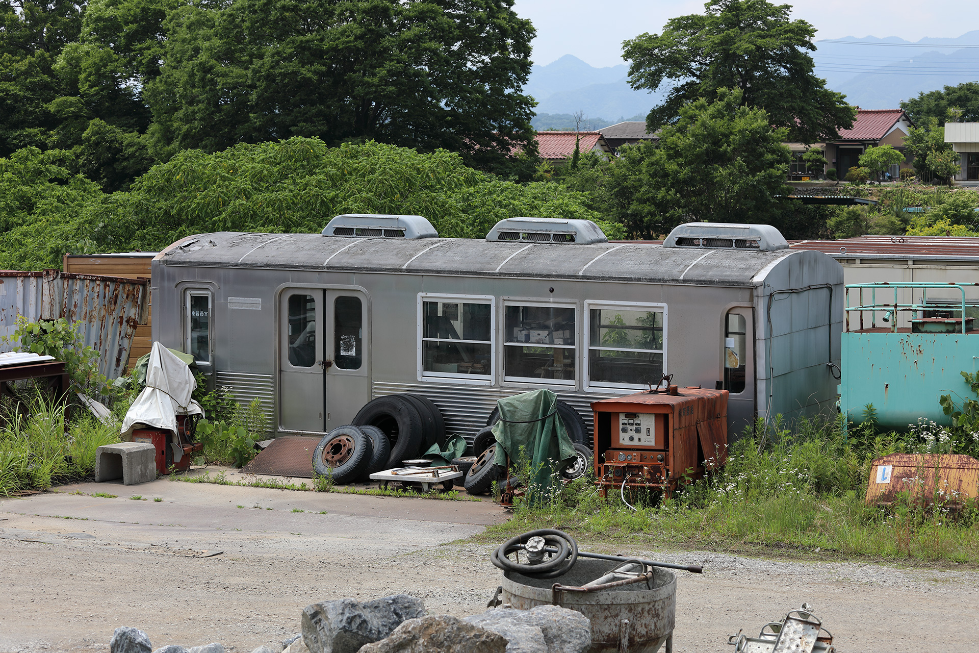 建設会社の敷地内に置かれているため近づいて観察することはできませんが、廃車体の存在自体は交通量もそこそこある道路から確認することができます。