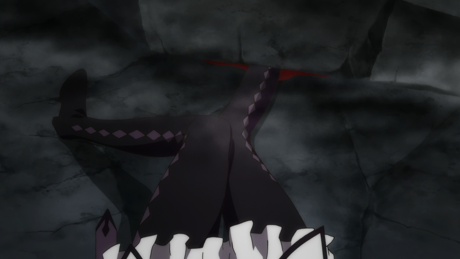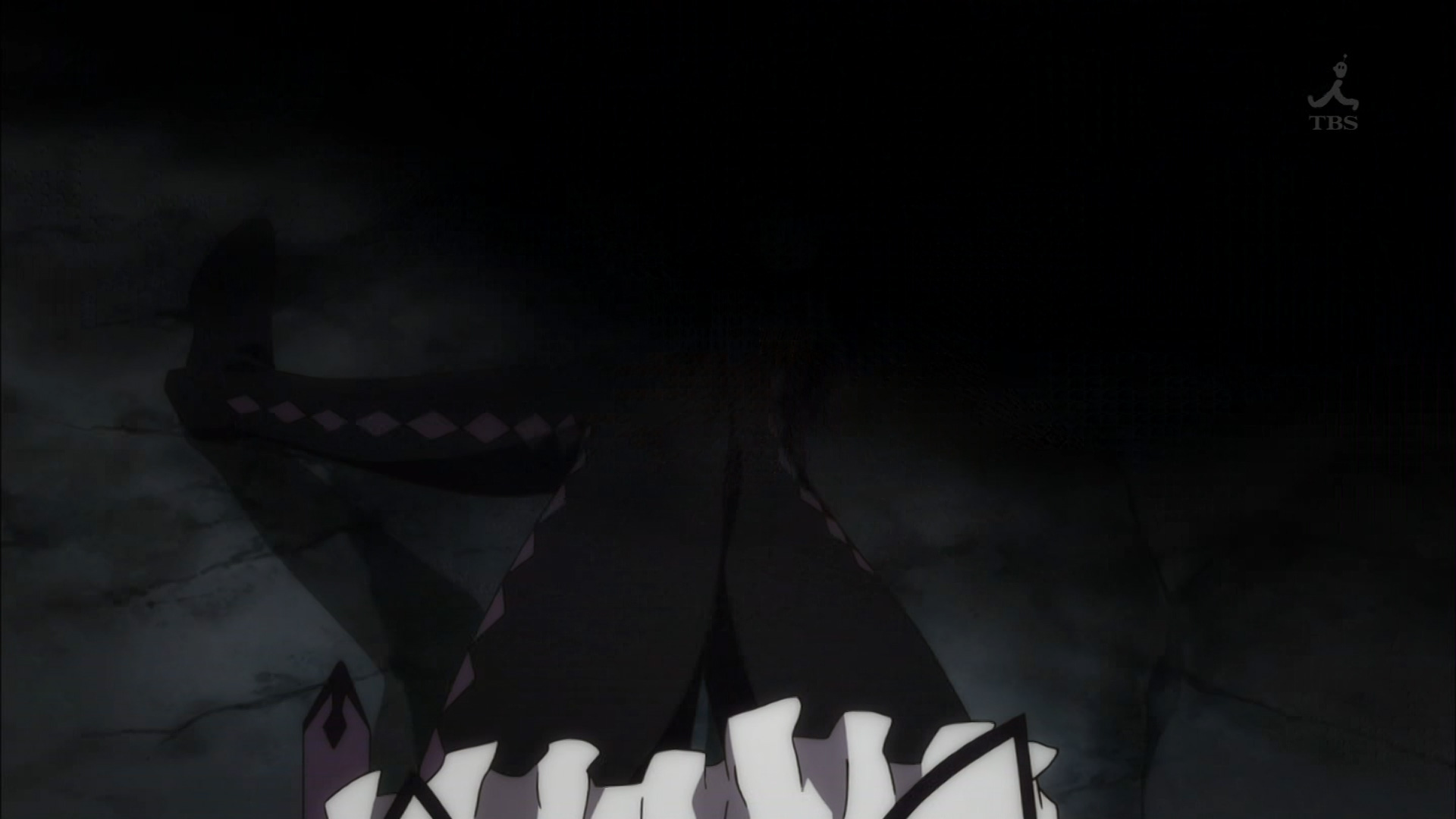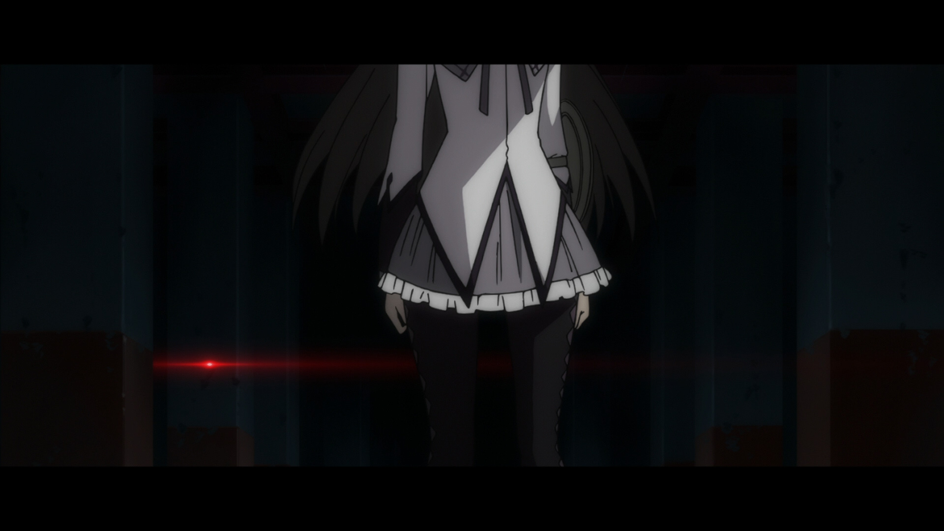 ここでほむらの右脚が瓦礫に押しつぶされたカットが写りました。このカットは、2011年4月22日の本放送時は震災配慮のためか、右脚周りが黒く塗りつぶされていましたが、ネット配信(4月25日配信開始)とパッケージ(9月21日発売)では鮮明になり、血の表現も追加されています。会場では血の表現があるバージョンが流れていました。