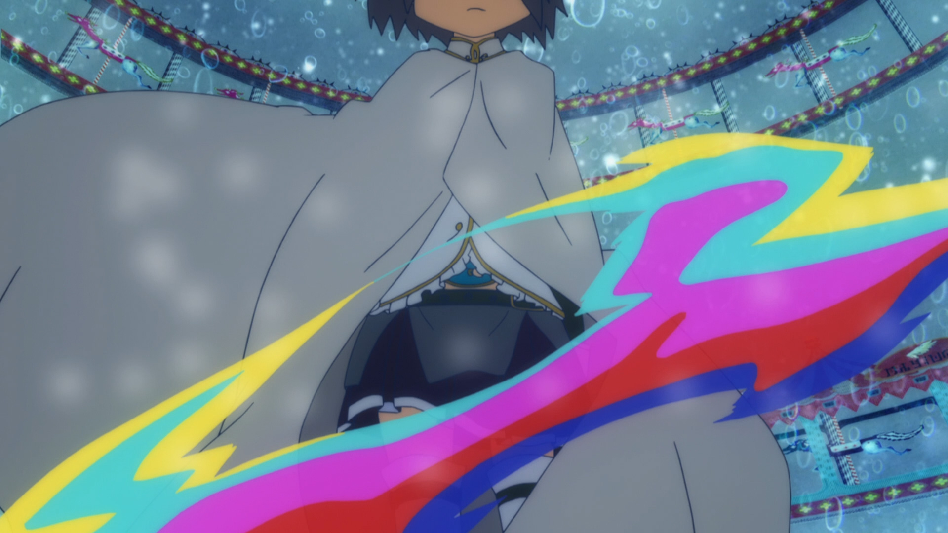 まどか契約時の「さあ叶えてよ、インキュベーター」の演技は、劇場版[後編]に近い絶叫系でした。このシーンも引き続きBGMは「Magia」で、TVシリーズとも劇場版とも異なる状況が新鮮でした。