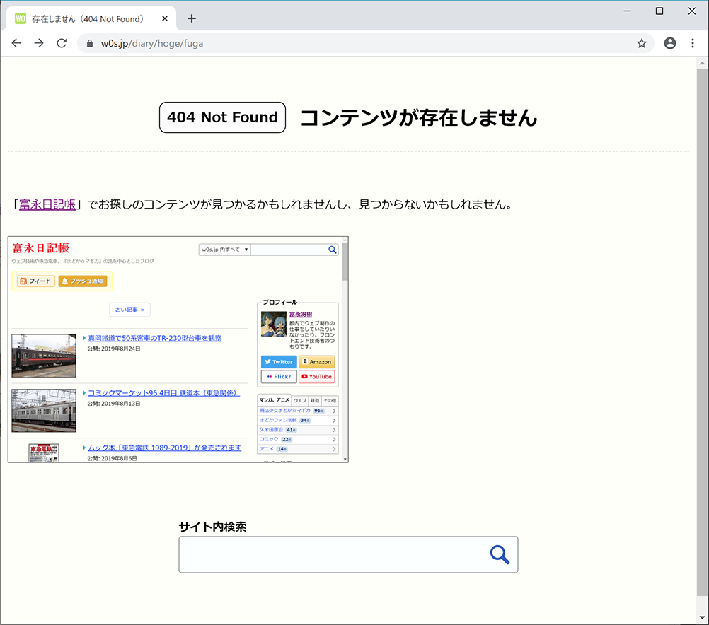 どんな感じかは https://w0s.jp/404 を参照[1]。