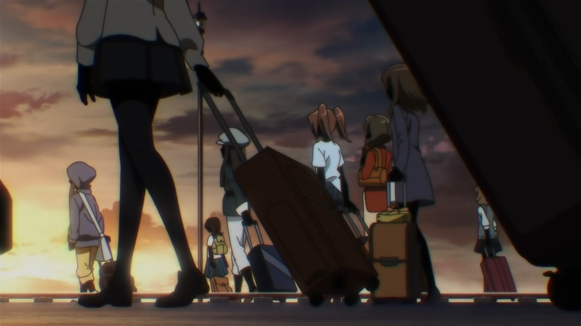 - カートを引きながら線路上を歩くモブキャラの女性たちは、これまで顔や手など肌が露出した部分は黒塗りなものの、服には色が塗られて普通の表現になっていたが、全体に色が視認しづらい程度に陰が掛けられた。これにより、通常表現のいろはとうい(のような少女)だけが際立って目立つようになった。