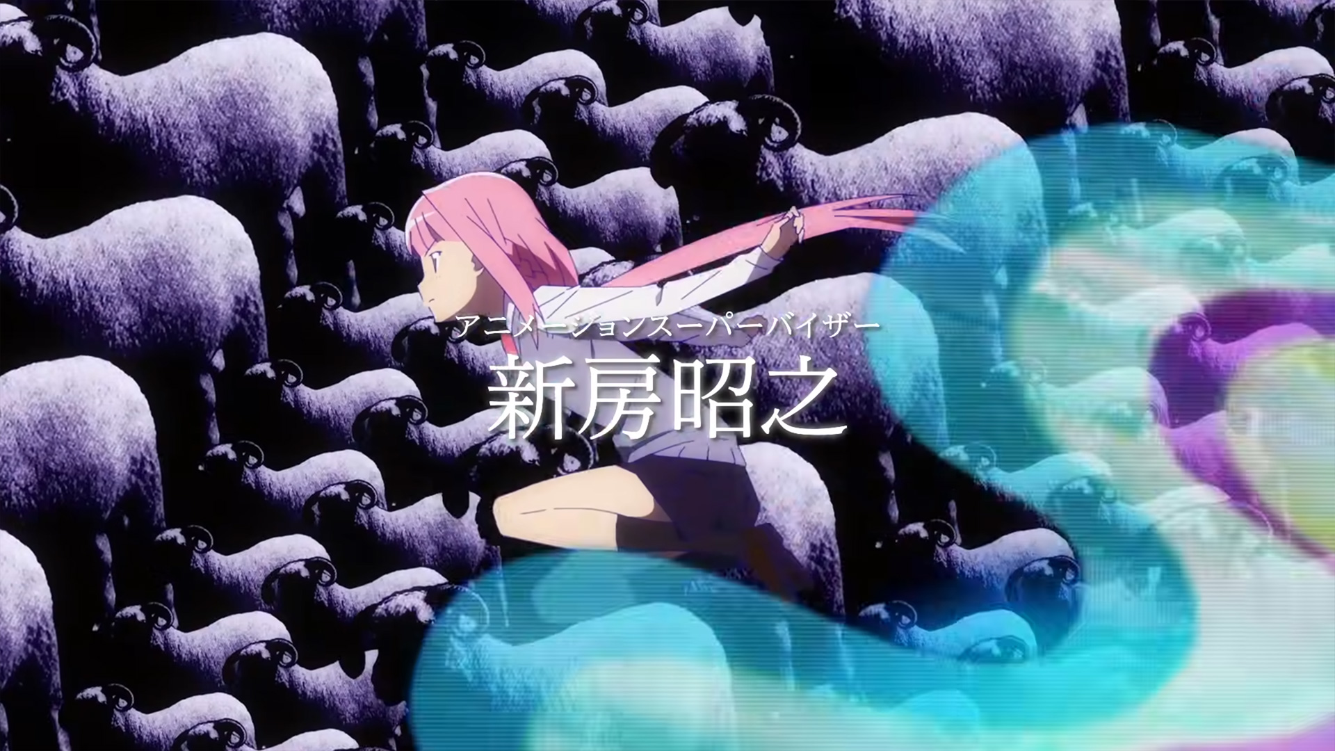 分度器の顔を持つ「Joseph(羊の魔女の手下)」が複数体で向かってくるカット、これは第2話Aパートでいろはが襲われたシーンです。ここでPV映像と本編の順序が大きく変わってきます。続く魔女結界のカットも、結界内に羊が多数描かれていることからお分かりのとおり、羊の魔女結界です。