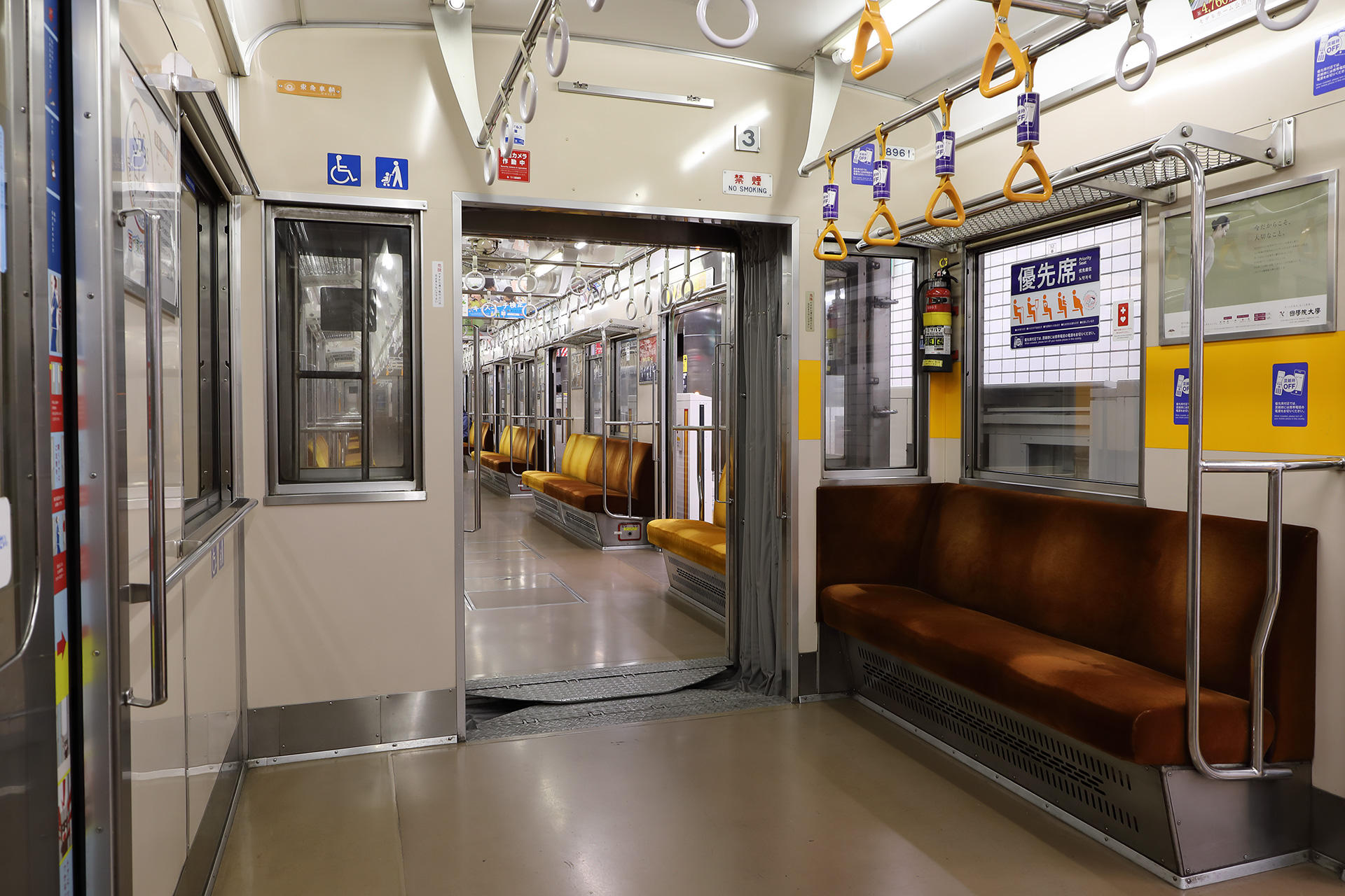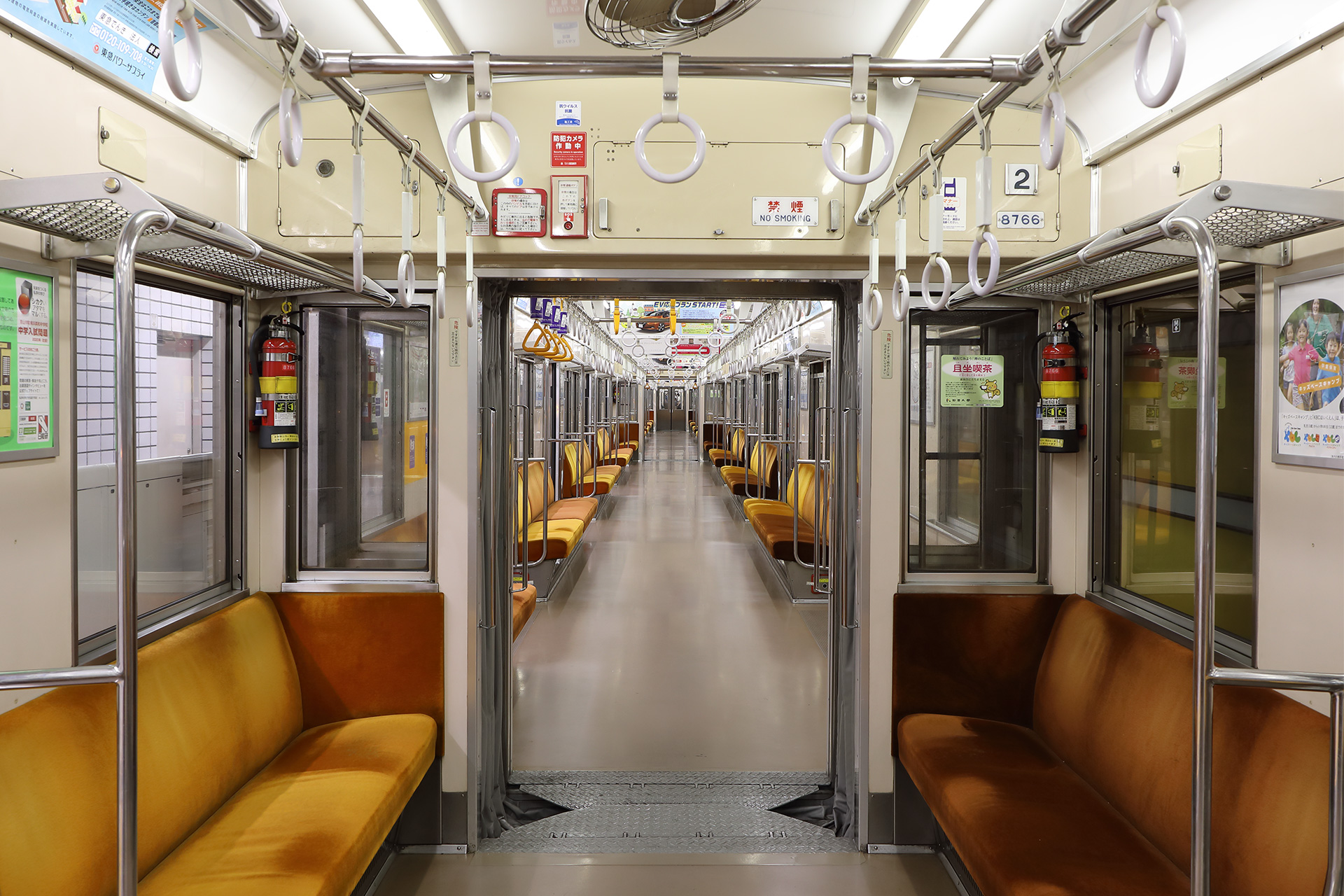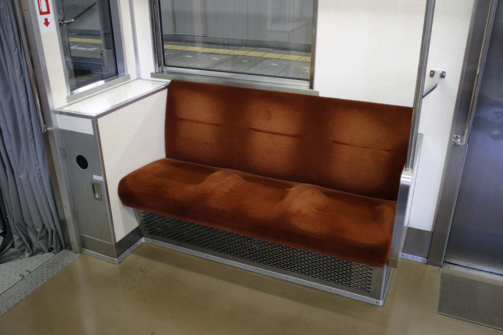 上記とは別に、車体更新車のうち改造工事が後期に行われた車両は、消火器が壁掛け(頭上)から座席脇(足元)へ移設され、その設置位置も下り方に集約されました(先頭車は1本が乗務員室設置なのは変わらずなので、上り向きのデハ8600形は下り方海側、下り向きデハ8500形は上り方山側のみ)。