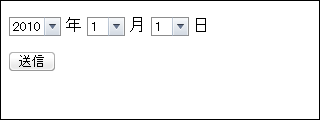 フォーム自体は、「年」「月」「日」それぞれのプルダウンと、送信ボタンがあるだけの単純なもの。