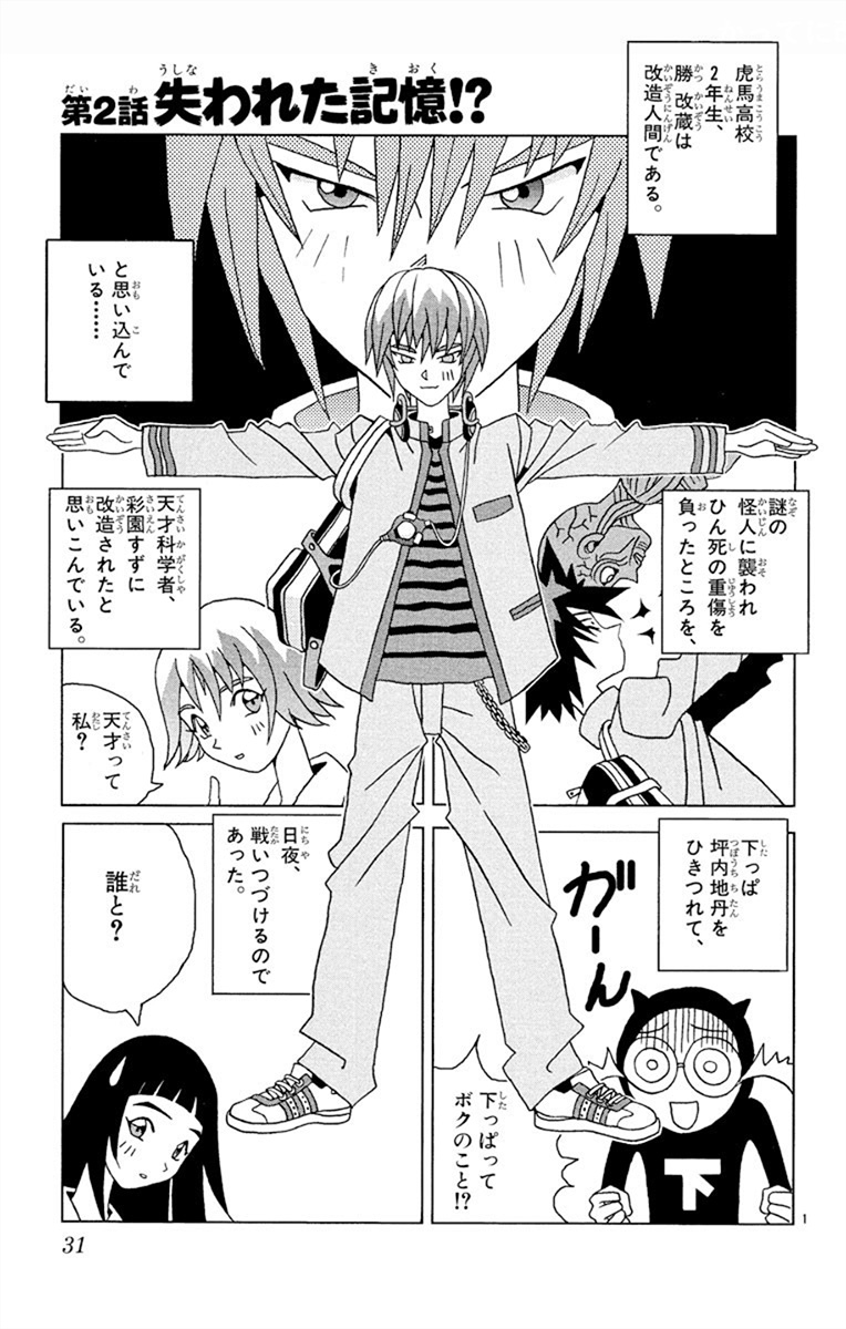 一方、オープニング後半で曲の間奏中に虎馬高校2年生、勝改蔵は改造人間である。……