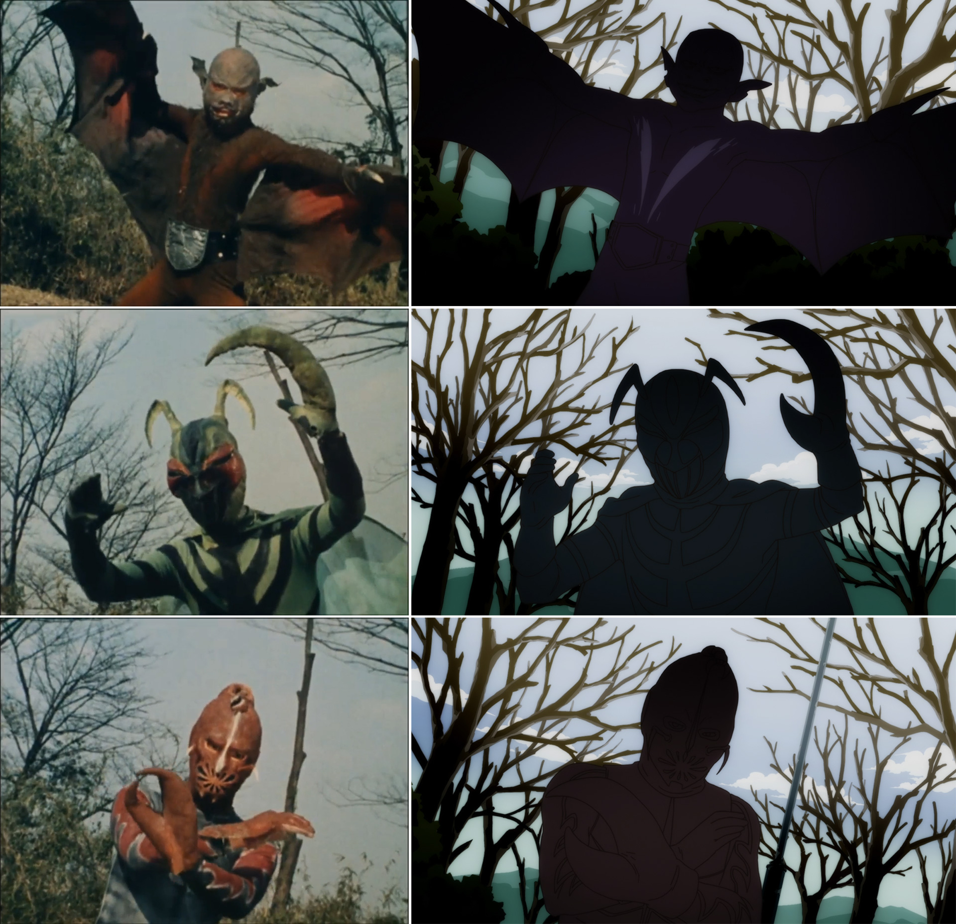 のナレーションが入る部分は初代『仮面ライダー』からのオマージュとなっています。これは元々原作漫画の2話「失われた記憶!?」の冒頭で同じオマージュが行われていたことに端を発するもので、原作準拠の一環とも言えます。
