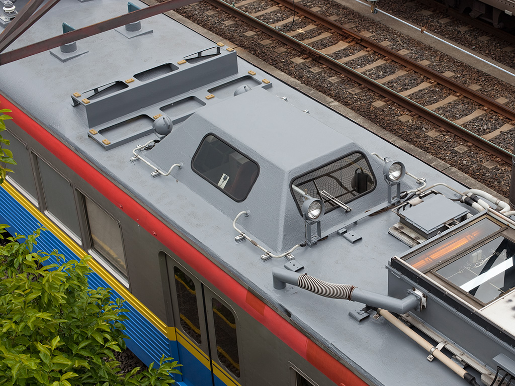 そういえば、2008年頃からデヤ7290号車の観測ドーム隣に架台が取り付けられており、測定装置のようなものを載せて東横線を走行している姿を目撃したことがありましたが、これのことだったのでしょうね。残念ながら測定中の写真は撮っていないのですが、架台だけでも。