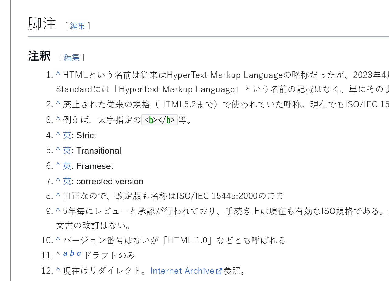 <span class="footnote_text">HTMLという名前は従来はHyperText Markup Languageの略称だったが、……</span>