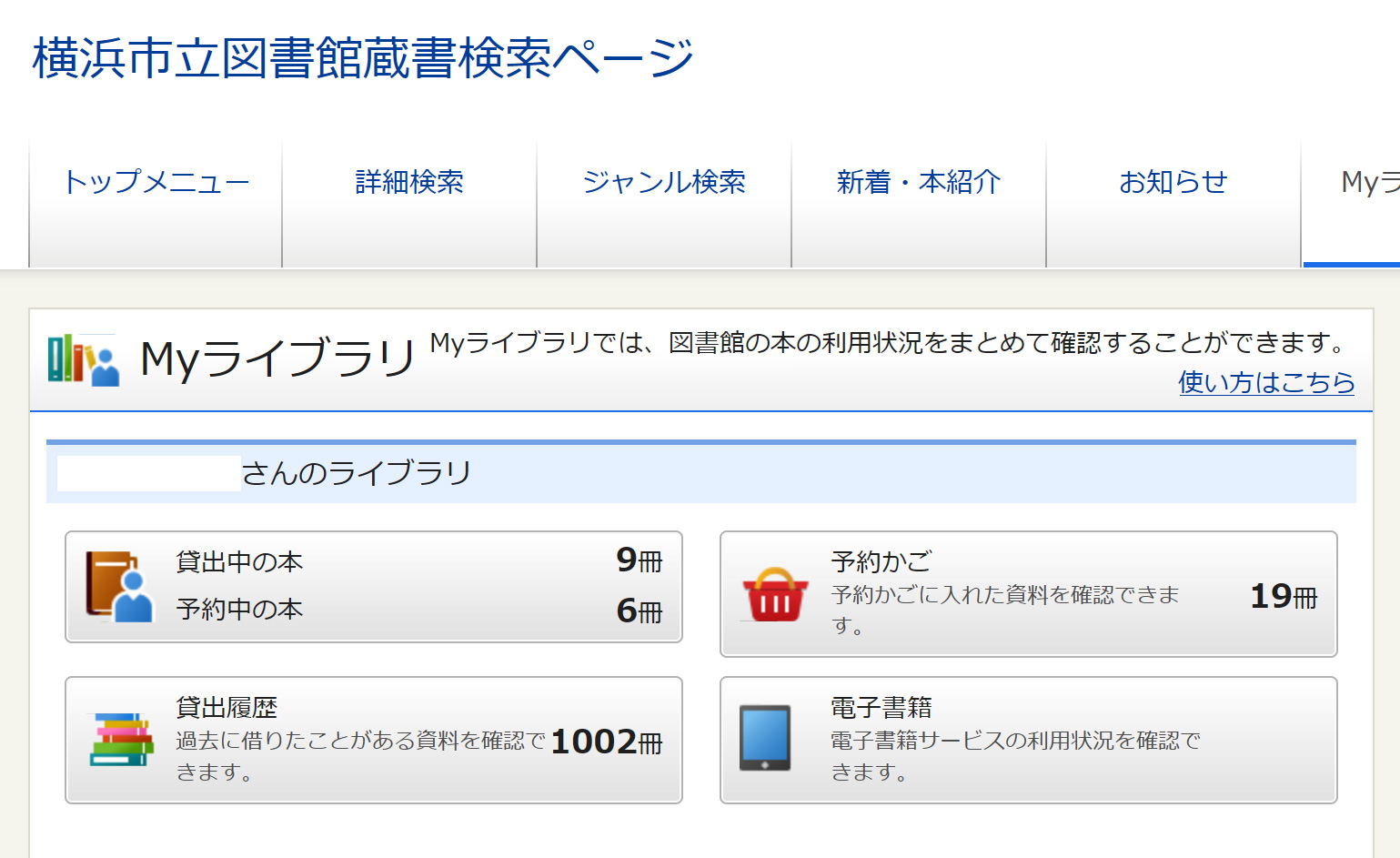 ところで気になるのは、蔵書検索ページの「Myライブラリ」の件数表示である。冒頭にも掲載したが、以下に再掲しよう。